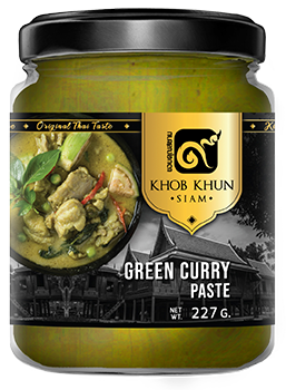Green curry is made from green chili, red onion, coriander root, garlic, kaffir lime leaves, then mixing altogether. Green curry is popular for cooking in most of the household, which is convenient for cooking and also saving time.