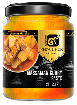 Massaman curry that has the composition of dried chili, galangal, lemon grass, red onion, garlic, coriander seed, caraway seed, nutmeg, clove and quality of herbs. All ingredients will create the taste of sweetness, salty as well as sourness to the curry. Normally, massaman curry is used to eat with steamed rice.